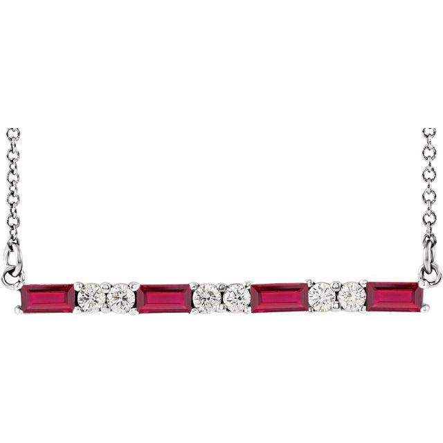 Ruby Necklace in Sterling Silver Ruby and 0.20 Carat Diamond Bar 16 inch Necklace