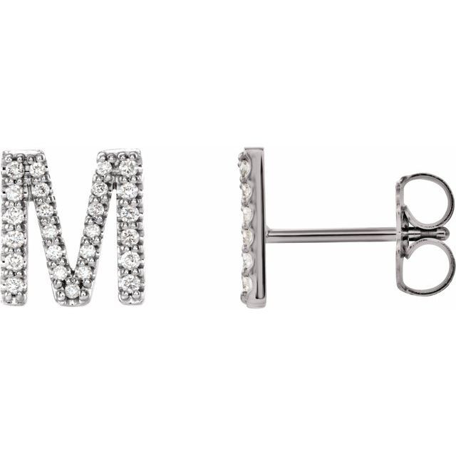 14 Karat White Gold .08 Carat Diamond Single Initial M Earring
