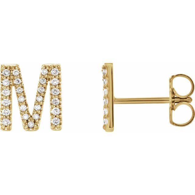 14 Karat Yellow Gold .08 Carat Diamond Single Initial M Earring