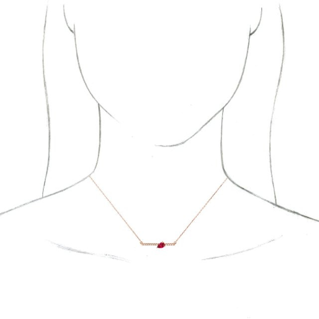 Lab Ruby Gem in 14 Karat Rose Gold Lab Ruby and 0.10 Carat Diamond Bar 16 inch Necklace