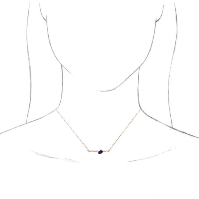 Created Sapphire Necklace in 14 Karat Rose Gold Lab Sapphire and 0.10 Carat Diamond Bar 16 inch Necklace
