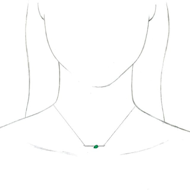 Created Emerald Necklace in Platinum Lab Emerald and 0.10 Carat Diamond Bar 18 inch Necklace