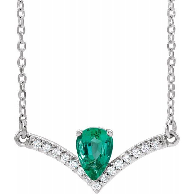 This beautiful Platinum Emerald & .06 Carat Diamond 16 inch Necklace - Ravishing Pear Emerald Necklace is a timeless jewelry item made in the highest standards for Gemstone Fashion jewelry