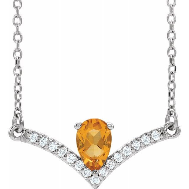 This beautiful Platinum Citrine & .06 Carat Diamond 16 inch Necklace - Chic Pear Citrine Necklace is a timeless jewelry item made in the highest standards for Gemstone Fashion jewelry