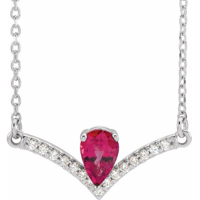 This beautiful 14 Karat White Gold Ruby & .06 Carat Diamond 18 inch Necklace - Stunning Pear Ruby Necklace is a timeless jewelry item made in the highest standards for Gemstone Fashion jewelry