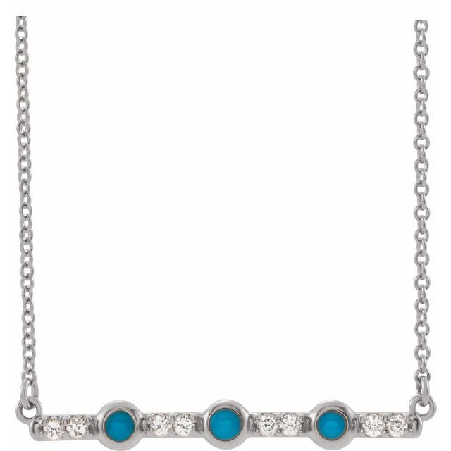Genuine Turquoise Necklace in Sterling Silver Turquoise and 0.12 Carat Diamond Bar 16 inch Necklace