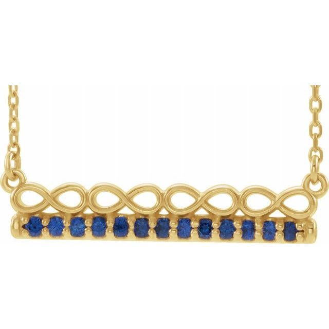 Sapphire Necklace in 14 Karat Yellow Gold Sapphire Infinity Bar 16 inch Necklace
