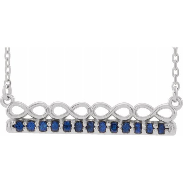 This beautiful Sterling Silver Blue Sapphire Infinity-Inspired Bar 16 inch Necklace - Splendid Round Sapphire Necklace is a timeless jewelry item made in the highest standards for Gemstone Fashion jewelry