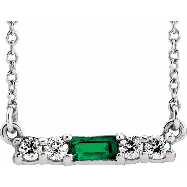 This beautiful Sterling Silver Emerald & 1/5 Carat Diamond 16 inch Necklace - Eye-Catching Straight Baguette Emerald Necklace is a timeless jewelry item made in the highest standards for Gemstone Fashion jewelry