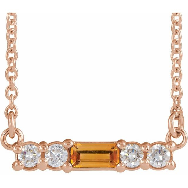 This beautiful 14 Karat Rose Gold Citrine & 1/5 Carat Diamond 16 inch Necklace - Appealing Straight Baguette Citrine Necklace is a timeless jewelry item made in the highest standards for Gemstone Fashion jewelry