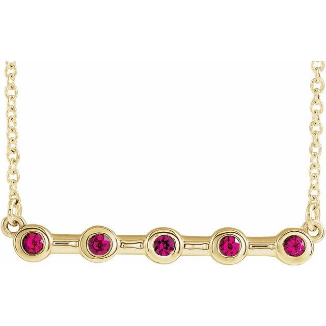 Ruby Necklace in 14 Karat Yellow Gold Ruby Bezel Set Bar 18 inch Necklace