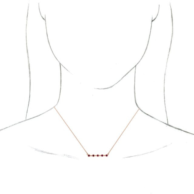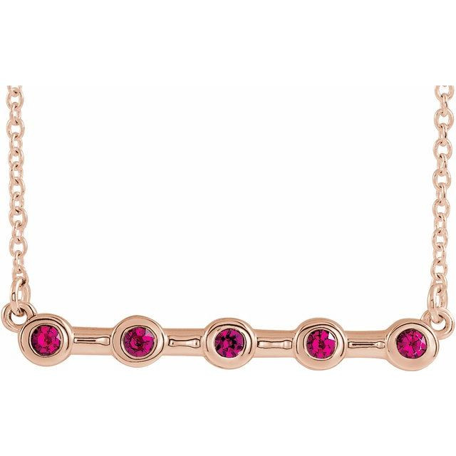 14 Karat Rose Gold Lab Grown Ruby Bezel Set Bar 18 inch Necklace Comes Set With