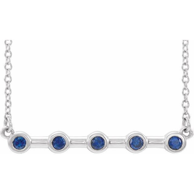 This beautiful 14 Karat White Gold Blue Sapphire Bezel-Set Bar 18 inch Necklace - Gorgeous Round Sapphire Necklace is a timeless jewelry item made in the highest standards for Gemstone Fashion jewelry