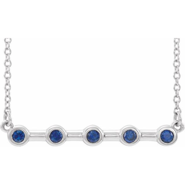 14K White Lab-Grown Blue Sapphire Bezel-Set Bar 18 inch Necklace Comes Set With