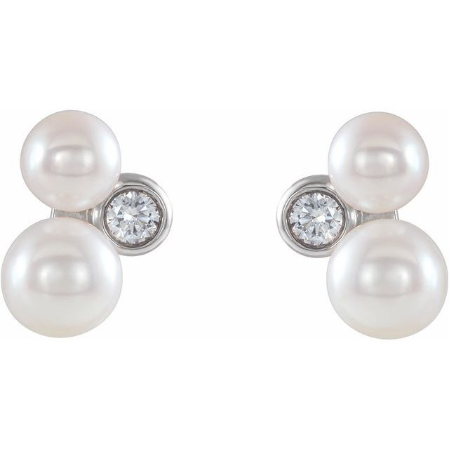 Sterling Silver Akoya Cultured Pearl and .125 Carat Diamond Earrings