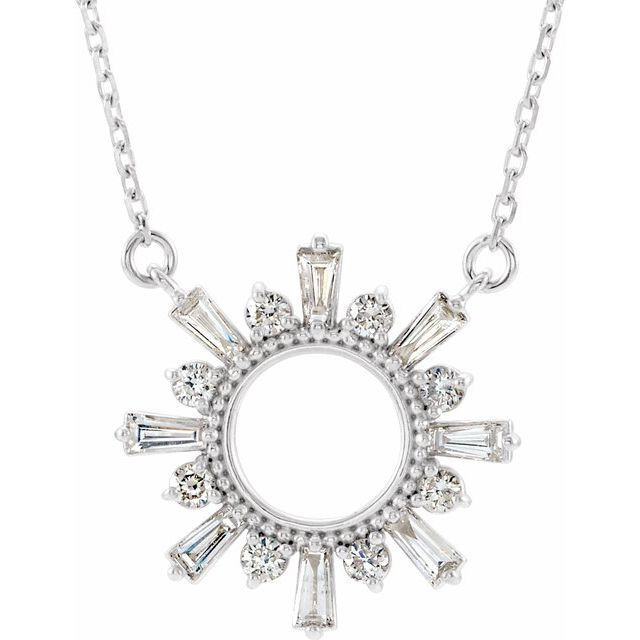 This beautiful Sterling Silver 3/8 Carat Diamond Circle 18 inch Necklace - Classy Tapered Baguette Diamond Necklace is a timeless jewelry item made in the highest standards for Diamond Fashion jewelry
