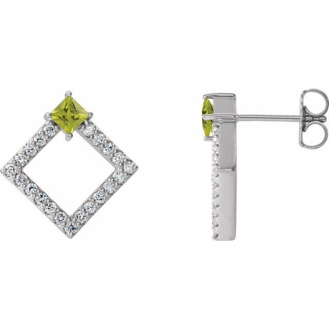 This beautiful 14 Karat White Gold Peridot & 0.33 Carat Diamond Earrings - Graceful Square Peridot Earrings is a timeless jewelry item made in the highest standards for Gemstone Fashion jewelry