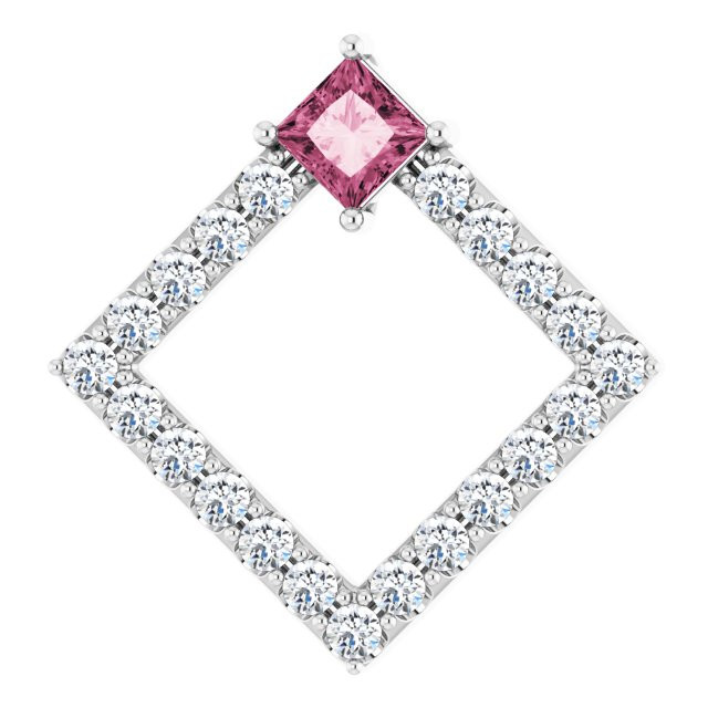 This beautiful 14 Karat White Gold Pink Tourmaline & 3/8 Carat Diamond Pendant - Splendid Square Tourmaline Pendant is a timeless jewelry item made in the highest standards for Gemstone Fashion jewelry