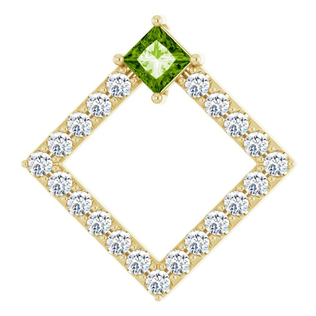 This beautiful 14 Karat Yellow Gold Peridot & 3/8 Carat Diamond Pendant - Beautiful Square Peridot Pendant is a timeless jewelry item made in the highest standards for Gemstone Fashion jewelry