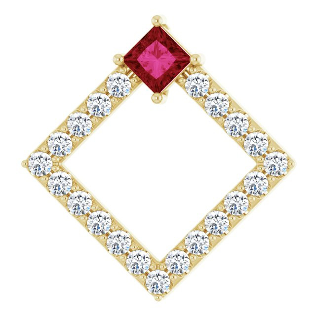 This beautiful 14 Karat Yellow Gold Ruby & 3/8 Carat Diamond Pendant - Lovely Square Ruby Pendant is a timeless jewelry item made in the highest standards for Gemstone Fashion jewelry