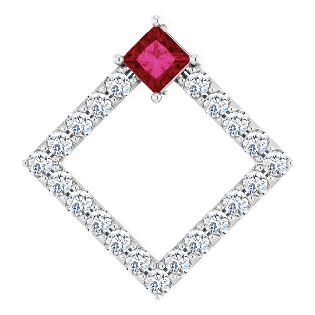 This beautiful Sterling Silver Ruby & 3/8 Carat Diamond Pendant - Ravishing Square Ruby Pendant is a timeless jewelry item made in the highest standards for Gemstone Fashion jewelry