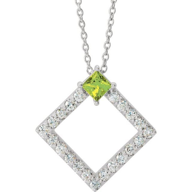 This beautiful 14 Karat White Gold Peridot & 3/8 Carat Diamond 16 inch Necklace - Chic Square Peridot Necklace is a timeless jewelry item made in the highest standards for Gemstone Fashion jewelry