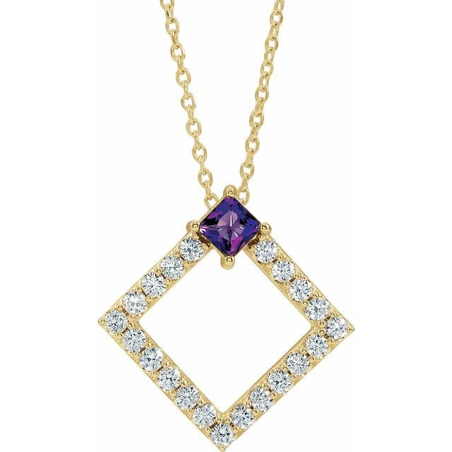 This beautiful 14 Karat Yellow Gold Amethyst & 3/8 Carat Diamond 16 inch Necklace - Graceful Square Amethyst Necklace is a timeless jewelry item made in the highest standards for Gemstone Fashion jewelry