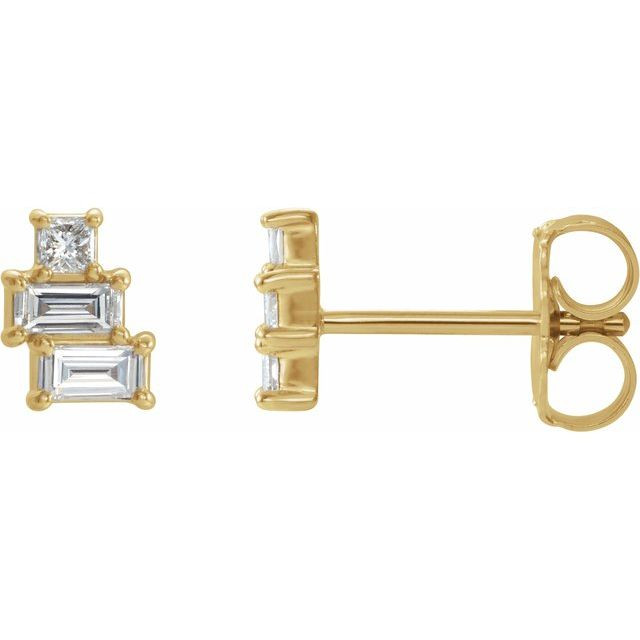 14 Karat Yellow Gold 0.25 Carat Diamond Geometric Cluster Earrings