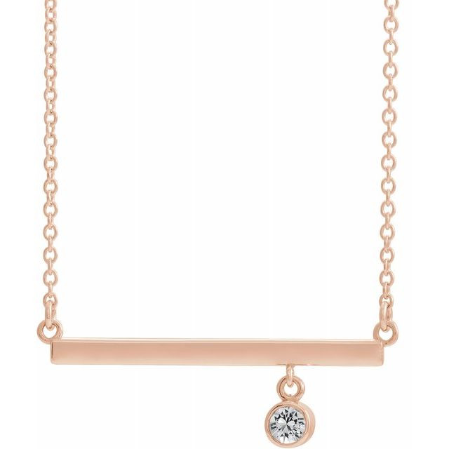 This beautiful 14 Karat Rose Gold Diamond Bezel-Set 16 inch Bar Necklace - Elegant Round Diamond Necklace is a timeless jewelry item made in the highest standards for Diamond Fashion jewelry