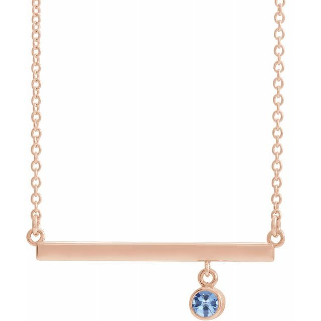 14 Karat Rose Gold Aquamarine Gem Bezel Set 18 inch Bar Necklace