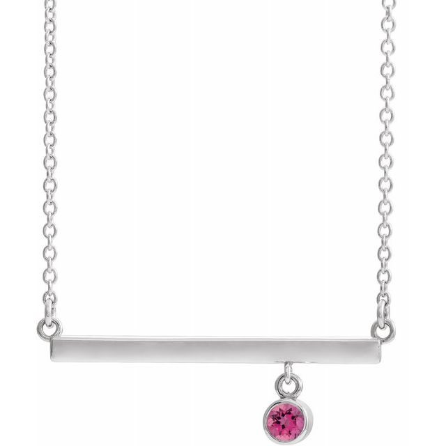 This beautiful 14 Karat White Gold Pink Tourmaline Bezel-Set 18 inch Bar Necklace - Fashionable Round Tourmaline Necklace is a timeless jewelry item made in the highest standards for Gemstone Fashion jewelry