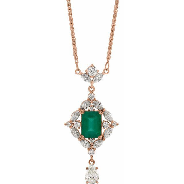 14 Karat Rose Gold Emerald & 1.25 Total Carat Weight Diamond 18 inch Necklace