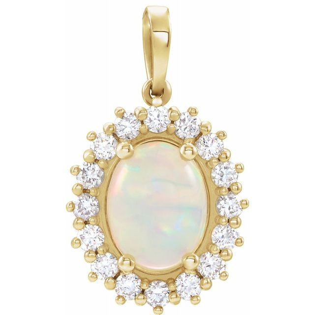 This beautiful 14 Karat Yellow Gold Ethiopian Opal & 1/3 Carat Diamond Pendant - Exquisite Oval Opal Pendant is a timeless jewelry item made in the highest standards for Gemstone Fashion jewelry