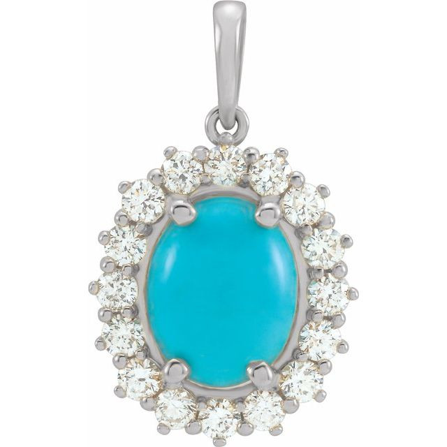 Turquoise Pendant in 14 Karat White Gold Turquoise and 0.50 Carat Diamond Pendant