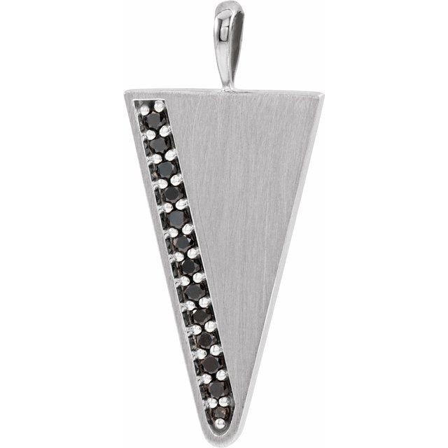 White Diamond in 14 Karat White Gold 0.20 Carat Black Diamond Triangle Pendant