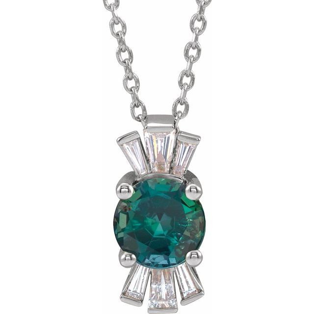 Sterling Silver Lab-Grown Alexandrite & 1/6 CTW Natural Diamond 16 inch Necklace Comes Set With