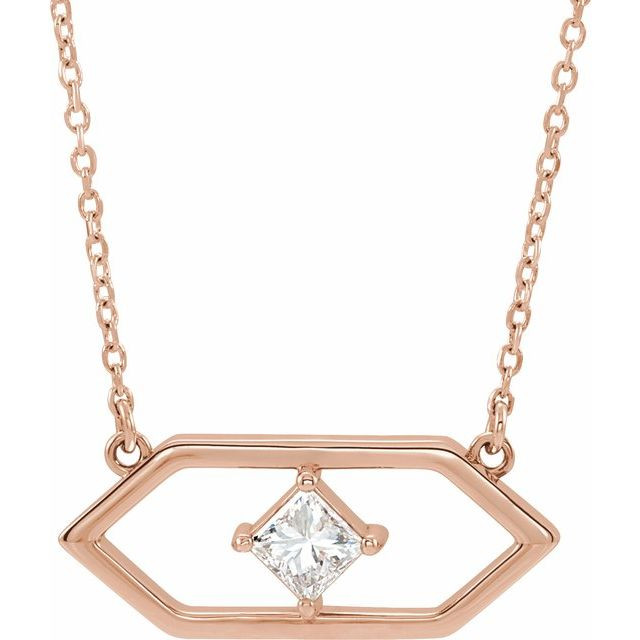 This beautiful 14 Karat Rose Gold 1/4 Carat Diamond Geometric 16 inch Necklace - Exquisite Square Diamond Necklace is a timeless jewelry item made in the highest standards for Diamond Fashion jewelry