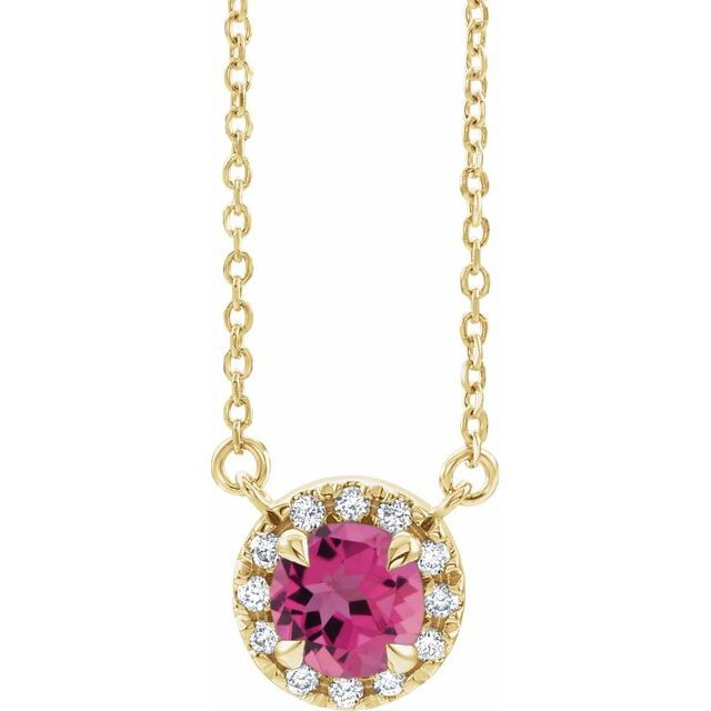 This beautiful 14 Karat Yellow Gold 3 mm Round Pink Tourmaline & .03 Carat Diamond 16 inch Necklace - Stunning Round Tourmaline Necklace is a timeless jewelry item made in the highest standards for Gemstone Fashion jewelry