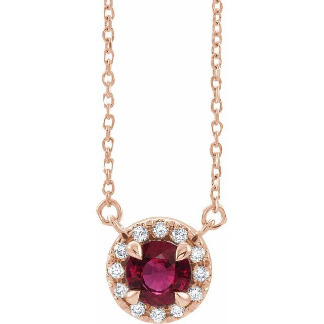 14 Karat Rose Gold 3 mm Lab Grown Ruby &.03 Carat Natural Diamond 18 inch Necklace Comes Set With