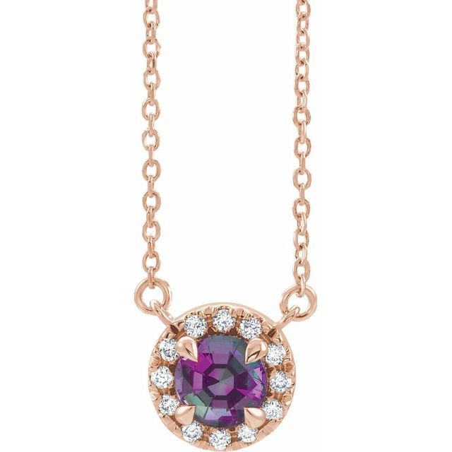 14 Karat Rose Gold 3.5 mm Lab Grown Alexandrite & .03 Carat Natural Diamond 18 inch Necklace Comes Set With