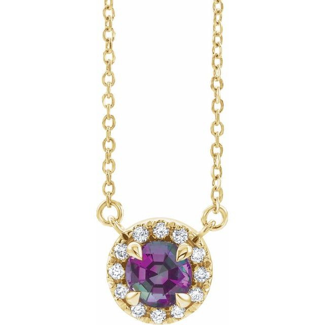 14 Karat Yellow Gold 5.5 mm Lab-Grown Alexandrite 1/10 CTW Natural Diamond 16 inch Necklace Comes Set With