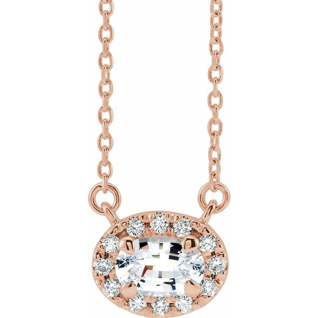 This beautiful 14 Karat Rose Gold 6x4 mm Oval White Sapphire & 1/10 Carat Diamond 16 inch Necklace - Eye-Catching Oval Sapphire Necklace is a timeless jewelry item made in the highest standards for Gemstone Fashion jewelry