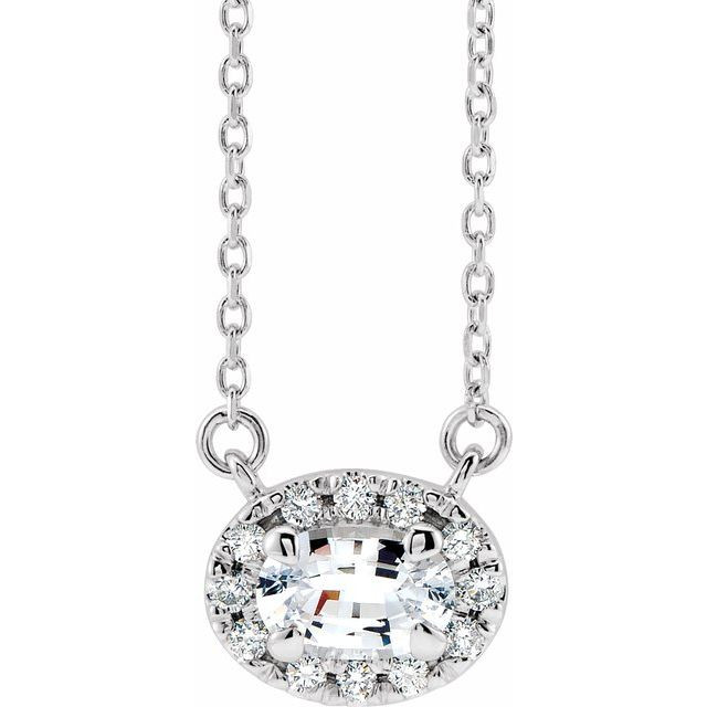 This beautiful Platinum 7x5 mm Oval White Sapphire & 1/6 Carat Diamond 18 inch Necklace - Exquisite Oval Sapphire Necklace is a timeless jewelry item made in the highest standards for Gemstone Fashion jewelry