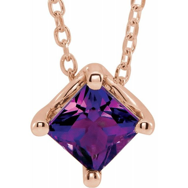 This beautiful 14 Karat Rose Gold Amethyst Solitaire 16-18" Necklace - Fashionable Square Amethyst Necklace is a timeless jewelry item made in the highest standards for Gemstone Fashion jewelry