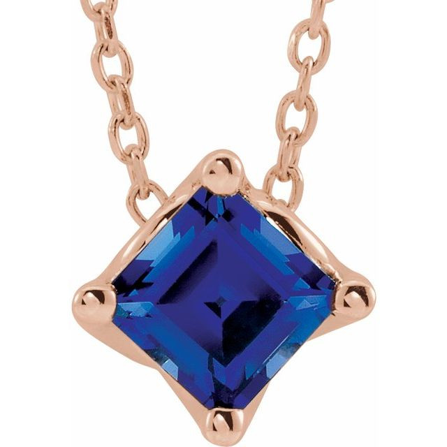 Created Sapphire Necklace in 14 Karat Rose Gold 4.5x4.5 mm Square Lab Sapphire Solitaire 16 inch Necklace