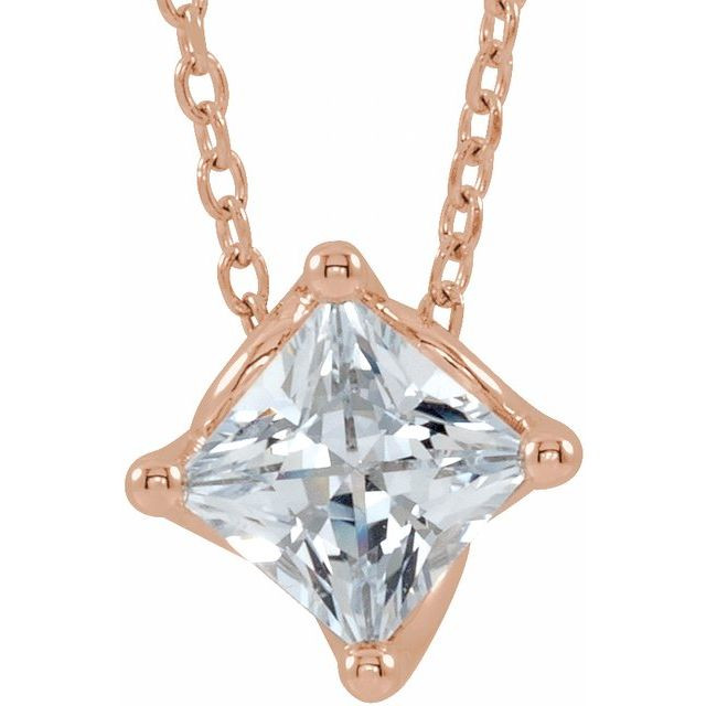 14K Rose 5x5 mm Square Natural White Sapphire Solitaire 16-18" Necklace Comes Set With