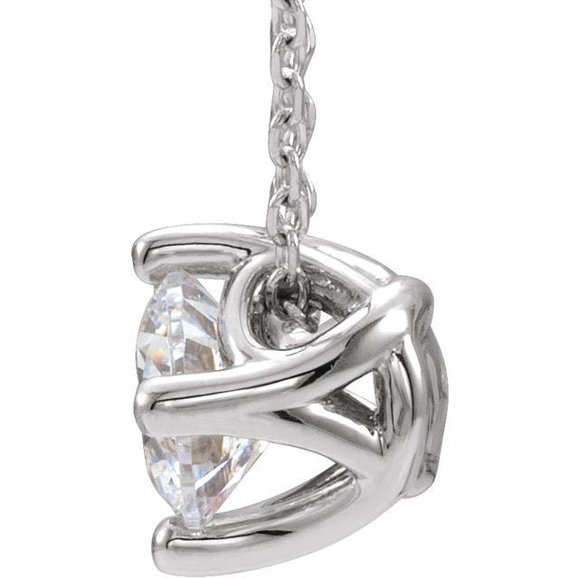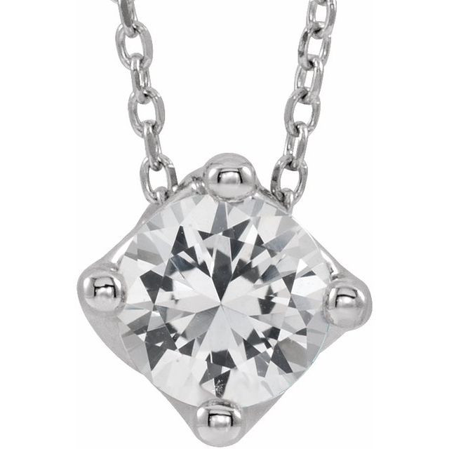14K White 5 mm Round Natural White Sapphire Solitaire 16-18" Necklace Comes Set With