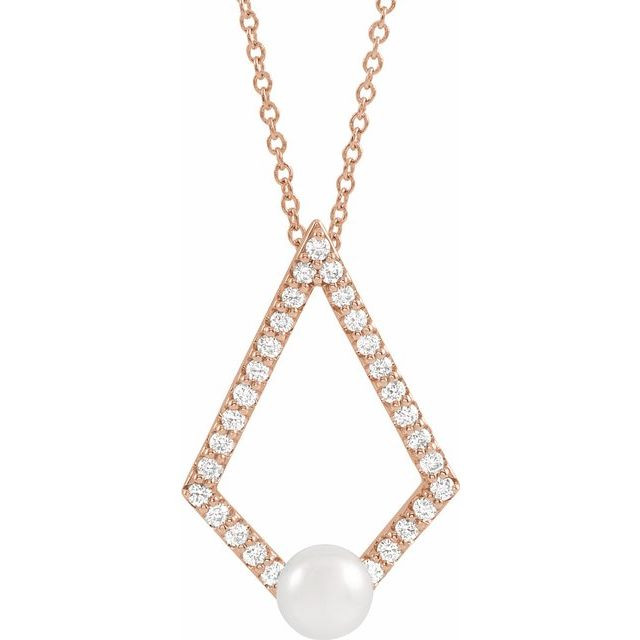 This beautiful 14 Karat Rose Gold Freshwater Cultured Pearl & 1/4 Carat Diamond Geometric 16 inch Necklace - Trendy Pearl Cultured Freshwater Pearl Necklace is a timeless jewelry item made in the highest standards for Gemstone Fashion jewelry