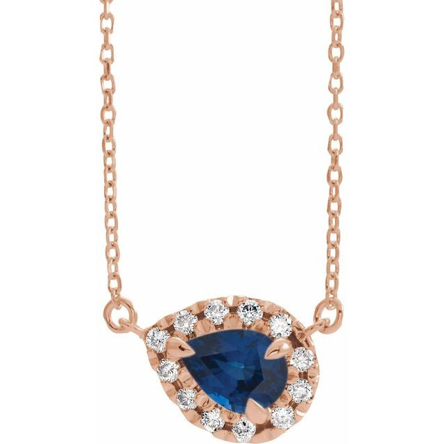 This beautiful 14 Karat Rose Gold 6x4 mm Pear Blue Sapphire & 1/6 Carat Diamond 16 inch Necklace - Ravishing Pear Sapphire Necklace is a timeless jewelry item made in the highest standards for Gemstone Fashion jewelry