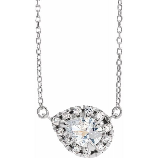 Sapphire Necklace in Sterling Silver 6x4 mm Pear White Sapphire and 0.16 Carat Diamond 16 inch Necklace